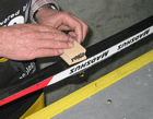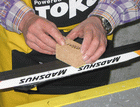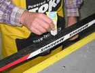 Nestemäinen voide suksiin joissa on mekaaninen pito. Nopea ja helppo käytää, Levitys sienellä joka mukana